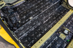 Chuẩn Bị Bề Mặt: Các bề mặt nội thất xe được làm sạch và xử lý kỹ lưỡng để đảm bảo vật liệu cách âm bám dính đều và chắc chắn.