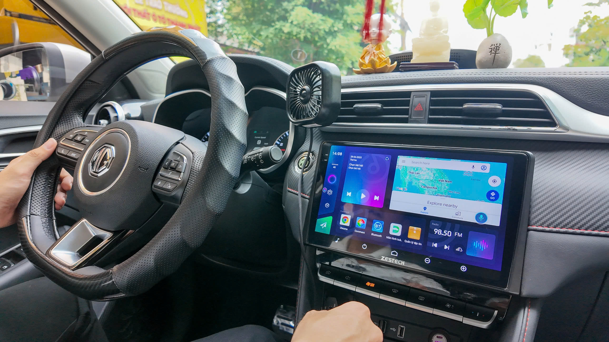 Khi lựa chọn lắp đặt, đội ngũ kỹ thuật viên sẽ sử dụng mặt dưỡng chuyên dụng thiết kế riêng cho MG ZS 2024, đảm bảo sự liền mạch với táp-lô xe mà không cần khoan đục hay đấu nối dây điện. Việc lắp đặt hoàn toàn tuân thủ quy tắc cắm jack zin, giữ nguyên các tính năng gốc của vô lăng và không làm ảnh hưởng đến chế độ bảo hành tại hãng.