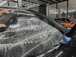 Áp dụng dung dịch tẩy ố chuyên dụng: Chúng tôi sử dụng các dung dịch tẩy ố hiệu quả nhưng không gây hại cho kính hoặc sơn xe.